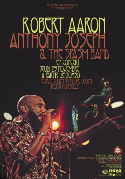 Le jeudi 29 novembre nous fêterons donc çà à l’Espace Julien avec nos amis de l’association Bol de Funk. Vous pourrez voir un concert de Robert Aaron suivi d’Anthony Joseph & the Spasm Band puis de djs sets du crew du label avec l’excellent Da Vince et de l’équipe de Bol de Funk.