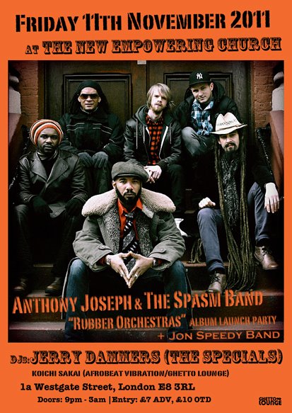 Trinidadian musician and poet Anthony Joseph launches his new album Rubber Orchestras with the electrifying Spasm Band (2011 Heavenly Sweetness / Naive), alongside the release and of his new poetry book.
